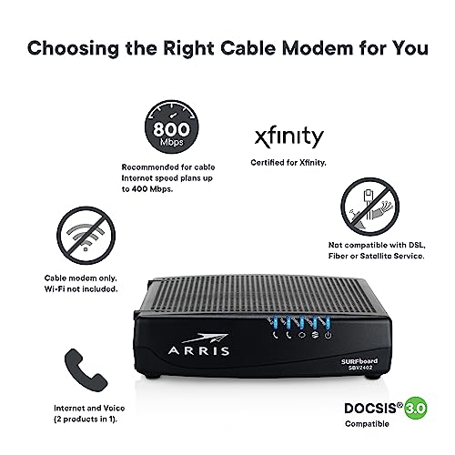 - Xfinity Voice Modem cable modem 3.0 compatible internet computer networking modems approved docsis docis3.0 1 gig best for high speed with fiber optic gaming gigabit wifi 6 voice 2 telephony ports 800 mbps plans sbv 3202 internet and voice plans