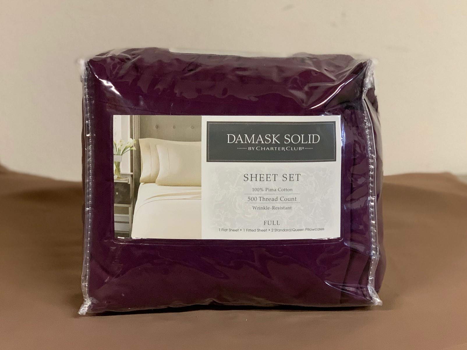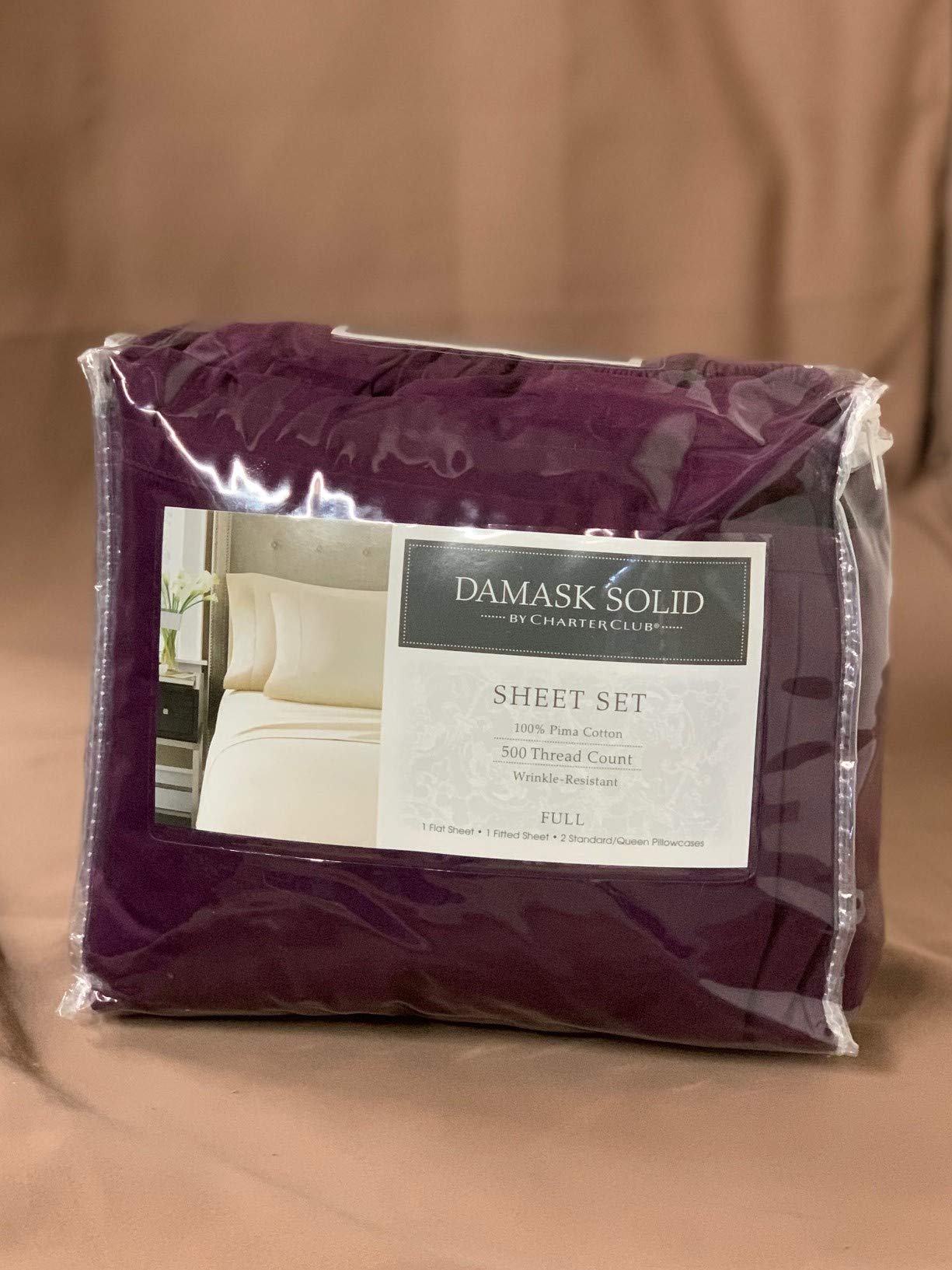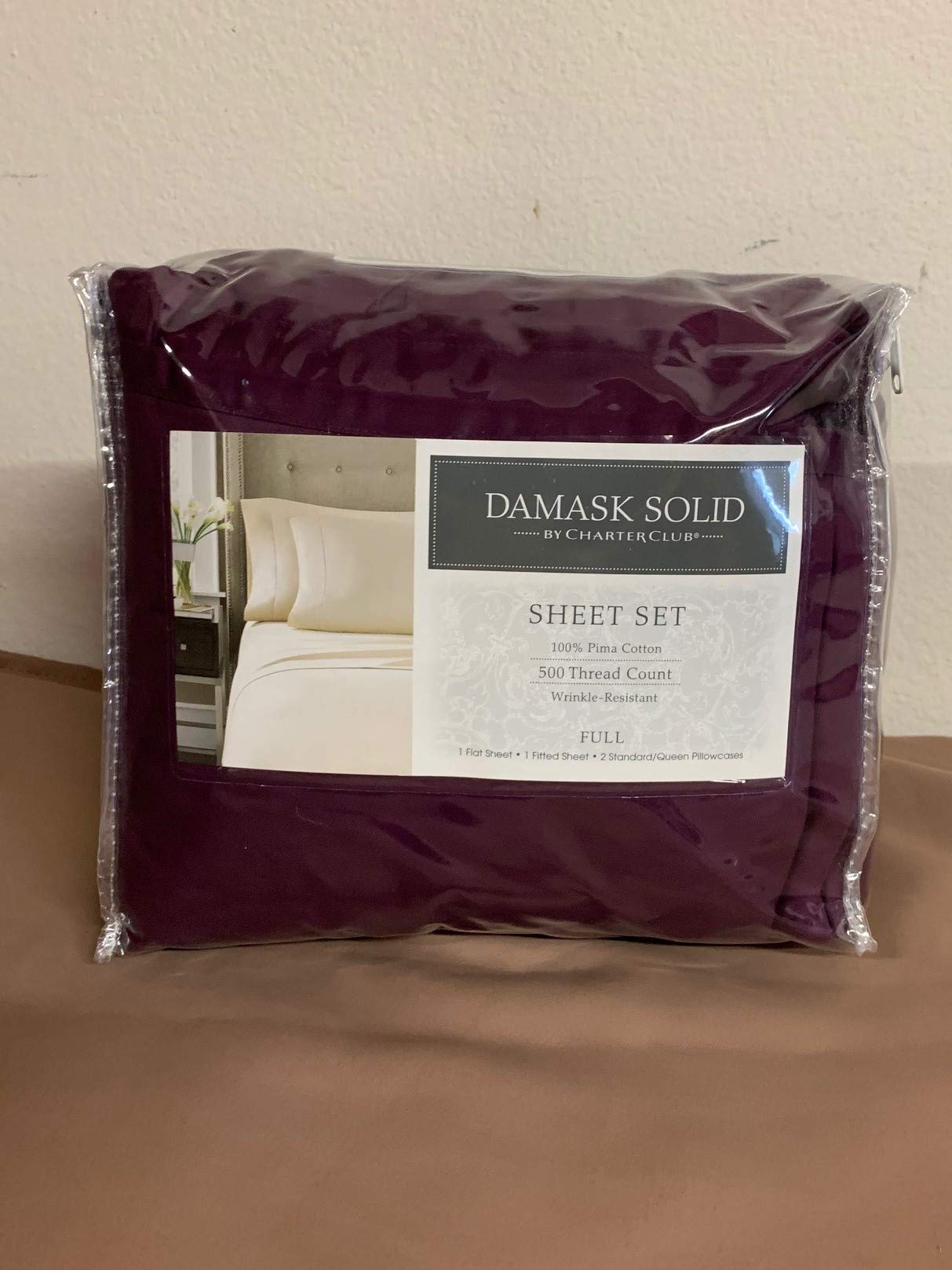 Details: Charter Club Damask Jewel Tones 500 Thread Count Full 4p.Sheet Set PURPLE FULL 100% COTTON