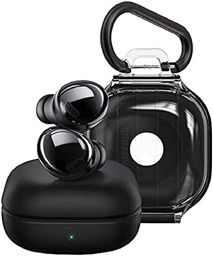 Details: The Galaxy Buds Pro can also be used for hands-free calling when paired with a compatible smartphone. Three microphones are used, along with beamforming technology, focus on and amplify your voice for clear conversations. To further help with call clarity, an outer mesh and internal chamber work to eliminate noise generated by the wind. The durable polycarbonate material fits snugly against your Galaxy Buds Pro charging case for a layer of protection from top to bottom and front to back. Snap on the detachable carabiner to attach it to your backpack strap or belt loop for easy access when you want to tune in to your playlist. Bluetooth 5.0, Up To 21 Hours Battery (ANC On) IPX7 Water Resistance Protection Rating Voice Detect Automatically Switches from Music to Conversation Wireless Charging Capable Auto Earbuds Switching: Switch From One Galaxy Device to Another