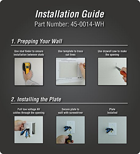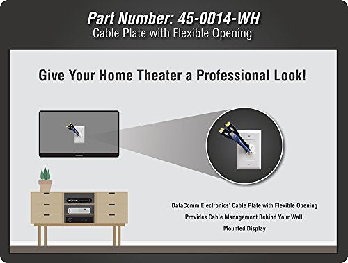 Details: DataComm Electronics' new, patented Cable Plate with Flexible Opening is used to install low voltage cables behind your flat panel TV, your amplifier or other audio video devices. This Cable Plate allows you to pass low voltage cables through the wall, while keeping the opening in the wall covered.