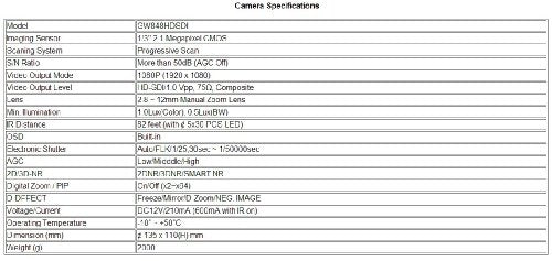 - GW848HDSDI: HD-SDI 1/3" 2.1 Megapixel CMOS Camera, Progressive Scan, 1080P Video Output Mode, HD-SDI Video Output Level, Vari-Focal 2.8~12mm Manual Zoom Lens, 30PCs IR LED