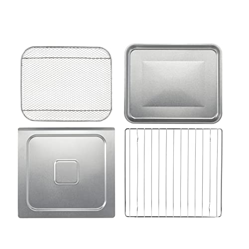 - INCLUDES ACCESSORIES: The air fryer toaster oven has 2 rack positions and includes a metal mesh basket for even air frying, bake pan, and broil rack. The basket fits on the upper oven rack with the bake pan/broil rack below to catch drippings.