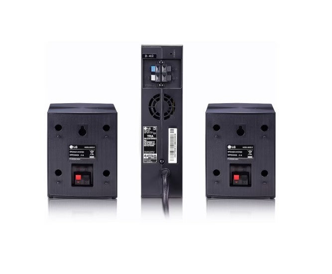 NameHigh Resolution Audio Up to 24bit/96kHz 4K Passthrough: Yes (HDCP 2.3) USB Playback Yes TV Remote Compatibility Yes Dynamic Range Control Yes (In App) Night Mode Yes LCD Display Auto-Dimmer Yes AI Sound Pro Yes Music Yes Bass Blast Yes Movie (Dolby Surround) Yes LPCM Yes Dolby TrueHD Yes Dolby Digital Yes DTS-HD Master Audio Yes DTS:X Yes OGG (Up to 48kHz) C4A / USB x / Yes WMA C4A / USB x / Yes AAC C4A / USB x / Yes Channel 5.1.2ch Front 30W x 2 Subwoofer 220W (Wireless) Total Output Power 5000W Center 30W Rear 60W x 2 Wireless Active Subwoofer Yes LG TV Sound Sync (Bluetooth) Yes Optical Input Yes HDMI (HDCP 2.3) Output 1 Bluetooth 4.00 LG TV Sound Sync (Optical) Yes USB Yes HDMI (HDCP 2.3) Input 1 Soundbar Power Consumption 38W Subwoofer Power Consumption 33W Rear Speaker Kit Power Consumption 50W Soundbar Standby Power Consumption 0.5W ↓ Soundbar Standby Power Consumption 0.5W ↓ Rear Speaker Kit Standby Power Consumption 0.5W ↓ TV Matching 40 inch ↑ Subwoofer (WxHxD) 7.1" x 15.4" x 11.5" Rear Speaker Each (WxHxD) 3.8" x 5.5" x 3.2" Subwoofer Net Weight 17.2 lbs Rear Speaker Pair Net Weight 4.1 lbs Sound Bar (WxHxD) 35.04" x 2.6" x 4.7" Wireless Receiver (WxHxD) 2.4" x 8.7" x 6.9" Soundbar Net Weight 8.2 lbs Wireless Receiver Net Weight 2.2 lbs Shipping Size (WxHxD) 38.7" x 8.9" x 23.2" Remote Control Yes Optical Cable Yes Cable Management Yes Batteries AAA x 2 Wall Mount Bracket Yes UPC 719192641525 -