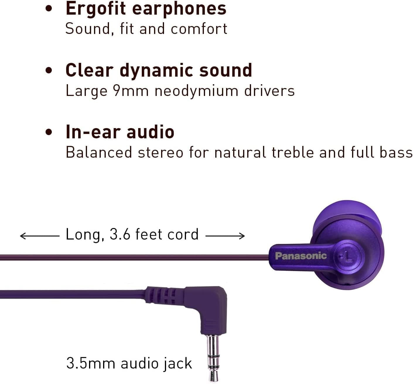 Panasonic ErgoFit Wired Earbuds inEar Headphones Dynamic CrystalClear