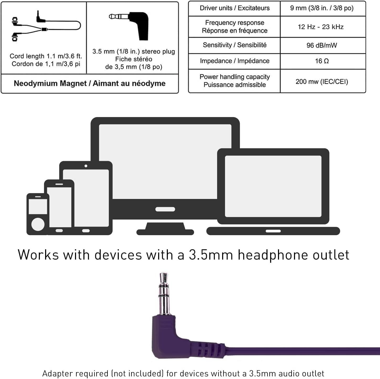 The earbuds come in a stylish metallic purple, adding a pop of color to your accessory collection. Durable and lightweight, the plastic construction ensures they are both sturdy and easy to carry. The 2.5mm jack ensures compatibility with a wide range of devices, making these earbuds a versatile choice for music lovers.