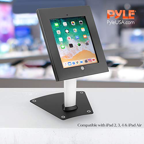 - ANTI-THEFT DESIGN: The Pyle Tablet Metal Security Stand Holder features ultra strong anti-theft laptop styled design. The tamper-proof design will reliably keep your device in place. Perfect for home, office or public applications