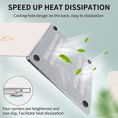 Seorsok Compatible with MacBook Pro 13 inch Case M2 2022,2020,2019-2016 Release(M1 A2338/A2289/A2251/A2159/A1989/A1706/A1708 Gold&Cute Heart Laptop Plastic Hard Case with Keyboard Cover,White
