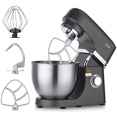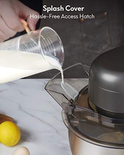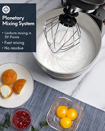 - 【Tilt-head & Planetary Mixing System】The tilt-head design mixer works with three accessories: Dough Hook, Flat Mixing Paddle, Chef’s Whisk, satisfies all different needs. The tilt head allows access to install or uninstall bowl and accessories with ease. Plus, Planetary Mixing System functions 59 touch points per rotation around bowl during mixing process. Perfect but effortless ingredient incorporation. All attachments are dishwasher safe.