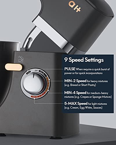 - 【100% Steel Gear & 8+Pulse Speed Control】This stand mixer has 100% steel gear parts to ensure its durability. This electric stand mixer features a peak value of up to 1000W motor and precise 8+Pulse speeds for nearly any recipe from mixing ingredients together on stir speed, to whipping cream at speed 8. You'll get thorough ingredient incorporation every time.