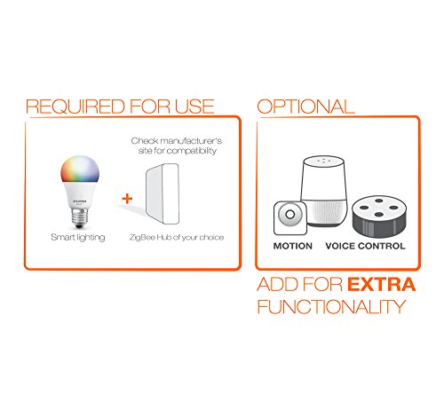 Details: Connect your SYLVANIA LIGHTIFY ZigBee Soft White Dimmable A19 LED light bulb directly to your compatible ZigBee smart hub and bring your smart home lighting experience to the next level. Take control of your lighting experience from anywhere using your smartphone or tablet by creating schedules and automations that fit into your daily routine. Never come home to a dark house by using your smartphone to turn your lights on when you;re coming home late or add security by keeping a well-lit house when you;re away on vacation. With voice integration using a compatible ZigBee hub (sold separately), use Amazon Alexa or the Google Assistant to control your lights. Simply pair your smart bulbs to your compatible ZigBee hub and start creating your own personalized lighting experience. What You Need to Get Started SMART+ ZigBee LED Light Smartphone Compatible Smart Home Hub Optional: Amazon Echo or Google Home smart speaker for voice control