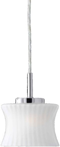 Details: From the Manufacturer Finish: Chrome, Glass: Frosted Ribbed, Light Bulb: (1)40w T4 G9 120v Xenon Opposites Attract! The Astro mini pendant has contrasting bold angular lines in chrome with curvy ribbed glass in white, marrying them in a fresh take on the traditional. 6' and 12' stems included for total 36' stem height.