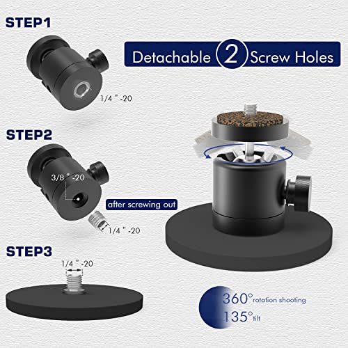 Tsuya Magnetic Camera Mount 60lb with Base Magnetic Camera Monitor Mount Heavy Duty with Mini Ball Head and 1/4''-20 Male Thread Stud for Mobile Camera£¬Magnetic Surfaces