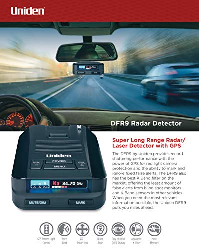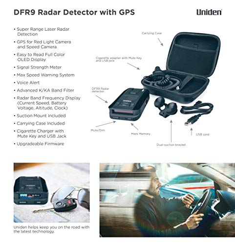 Uniden DFR9 Super Long Range Laser and Radar Detection, Built-In GPS for Red Light Cameras and Speed Camera Alerts, Easy to Read Full Color OLED Display